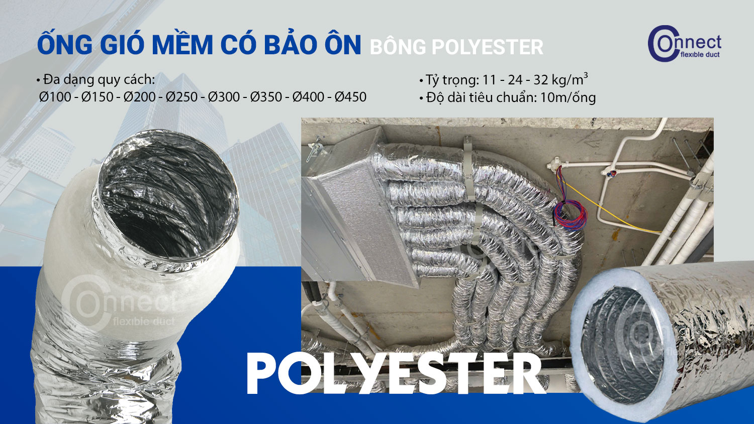 Banner ống gió mềm bảo ôn Polyester Connect